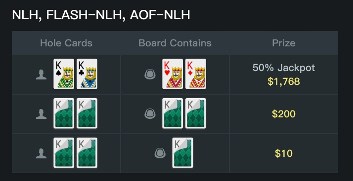 Nos jogos de cash NLH, você pode ganhar prêmios instantâneos de $10, $20 e até 50% do valor total ao vivo do Kings Jackpot.