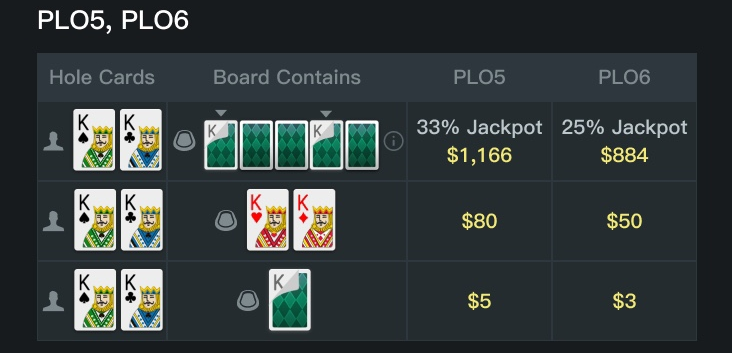Nos jogos de cash PLO5 e PLO6, você pode ganhar prêmios instantâneos a partir de $3 e até 33% do valor total ao vivo do Kings Jackpot.